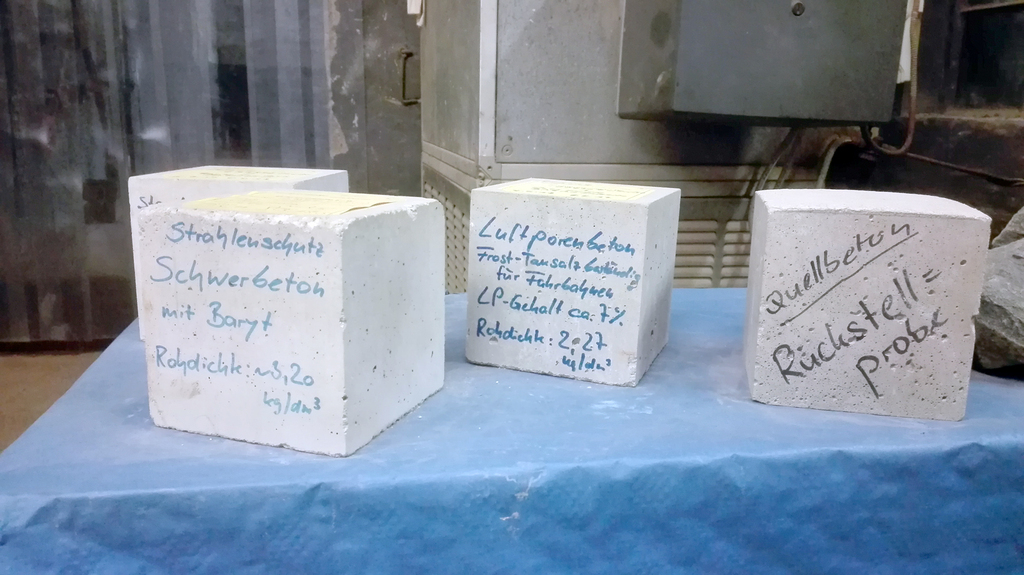 Links: Dendriten - Strukturen im Gestein / Mitte: Beton-Rückstellmuster der PWS / Rechts: verschiedene lieferbare Körnungen