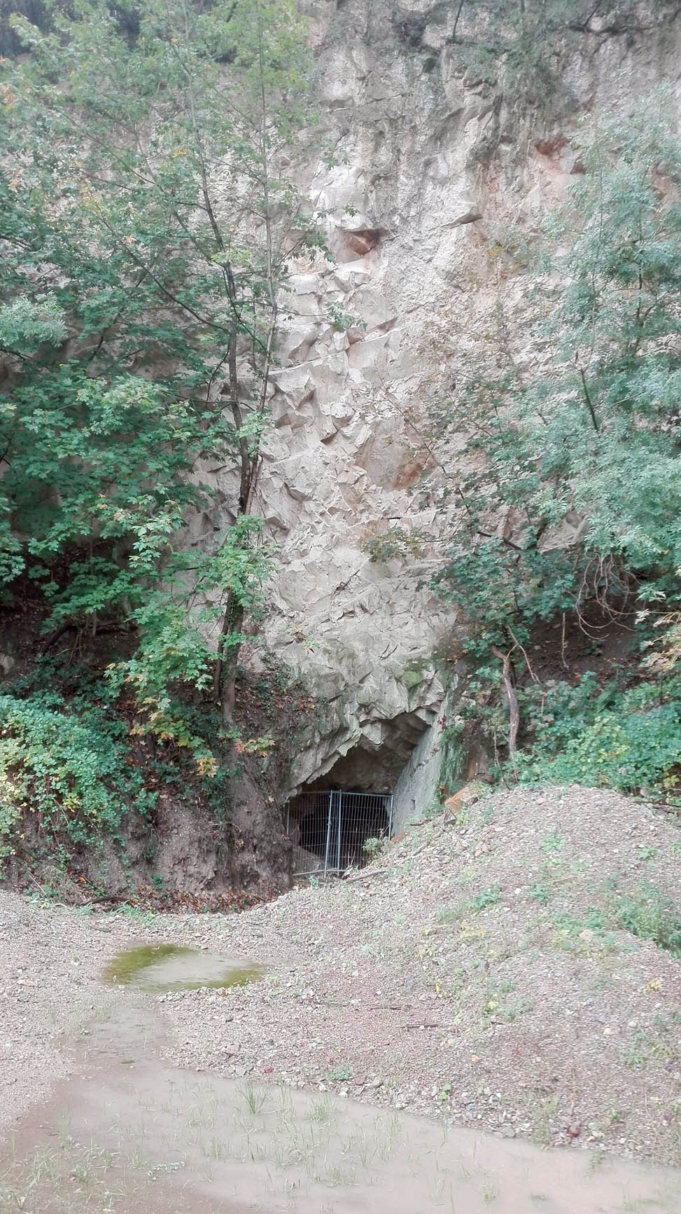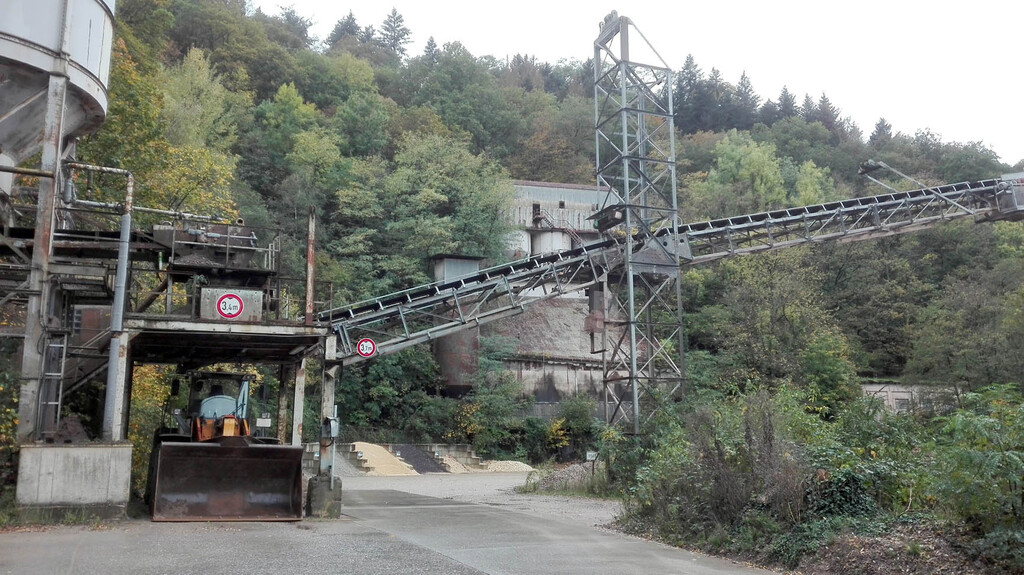 Von der Zufahrt auf dem Betriebsgelände führt ein Stollen nach Süden duch die Steinbruchwand in den Trichter.
