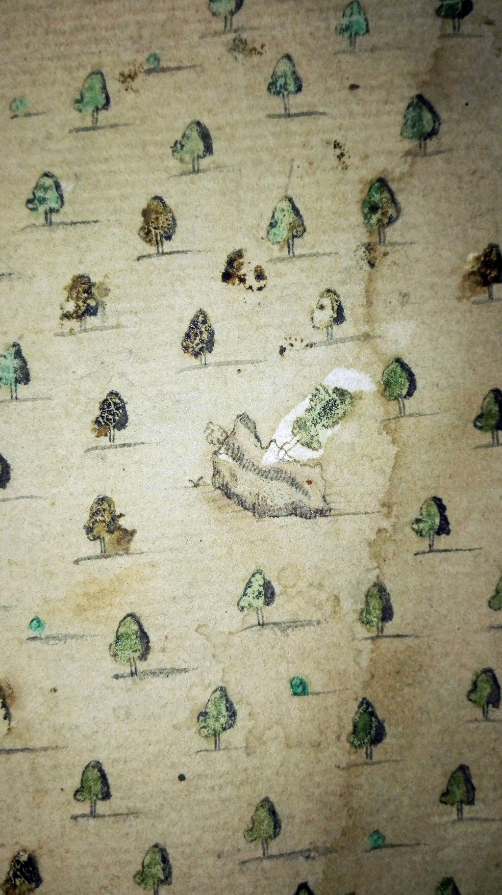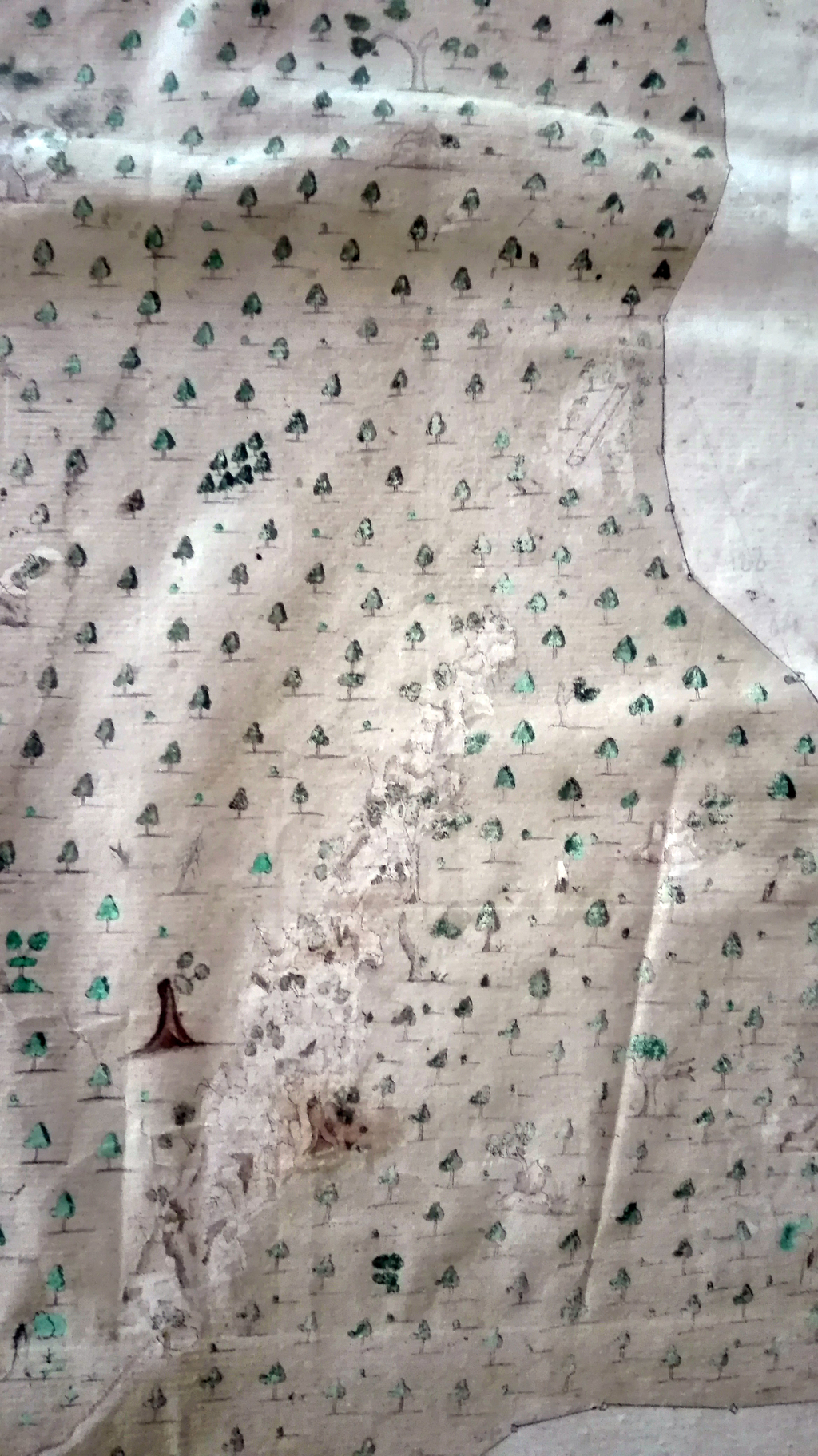 | Das Felsenmeer und die Riesensäule | liebevoll gezeichnete Details: Felsen mit Bearbeitungsspuren und Bäume | Tractusriß 10: deutlich sind die Meßpunkte eingezeichnet, zwischen denen die Kette gezogen worden war |