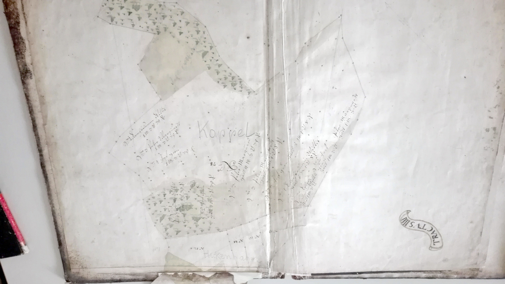 Grimm arbeitete im Frühjahr Sommer und Herbst in der Landschaft und erstellte die Vermessungsdaten mit Hilfe seiner Kettenzieher: zwei Zieher spannten eine Kette von 14,6 Meter Länge, Träger setzten an den Endpunkten Pflöcke und Fähnchen, die später durch Grenzsteine ersetzt werden. Ihre genaue Position wird in die Karte eingezeichnet. Jeder Kettenzug, im Dreieck ergänzt, ergibt so weitere klar definierte Punkte. Im Winter übertrug er seine Messungen in saubere Tractus-Rißzeichnungen. Tractus (lat) = Kettenzug, gezogen.