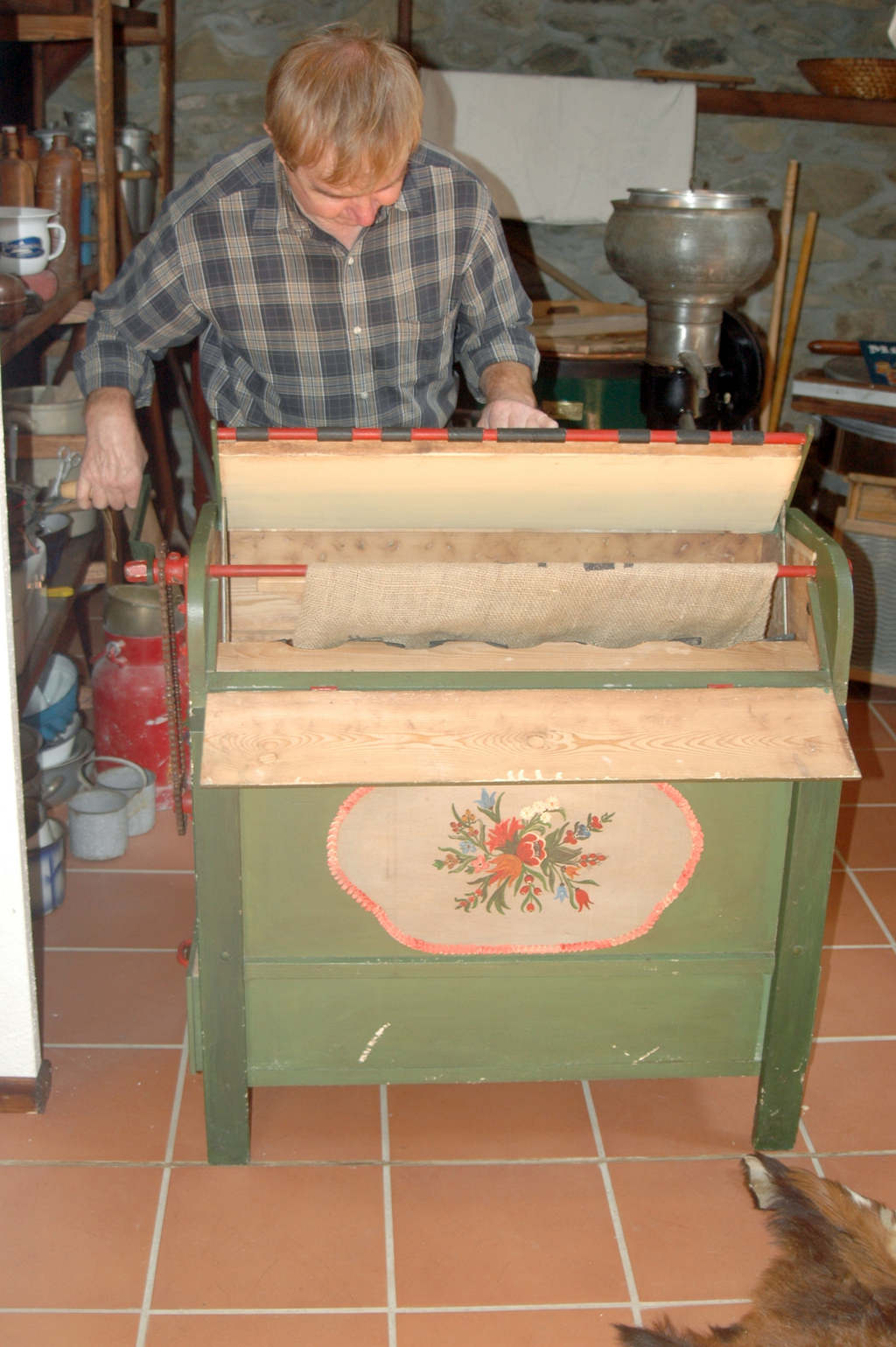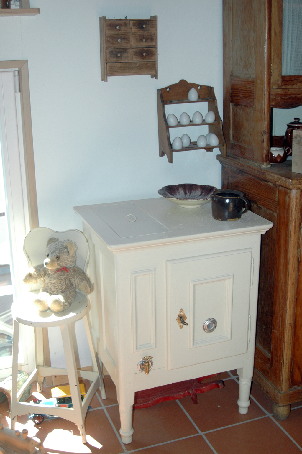 Eisschrank aus Ernsthofen: in das Fach unter dem Deckel oben drauf wurde Eis gelegt, das im Winter vom Dorfteich gewonnen wurde und in Eiskellern bis weit in den Sommer hinein erhalten werden konnte.
