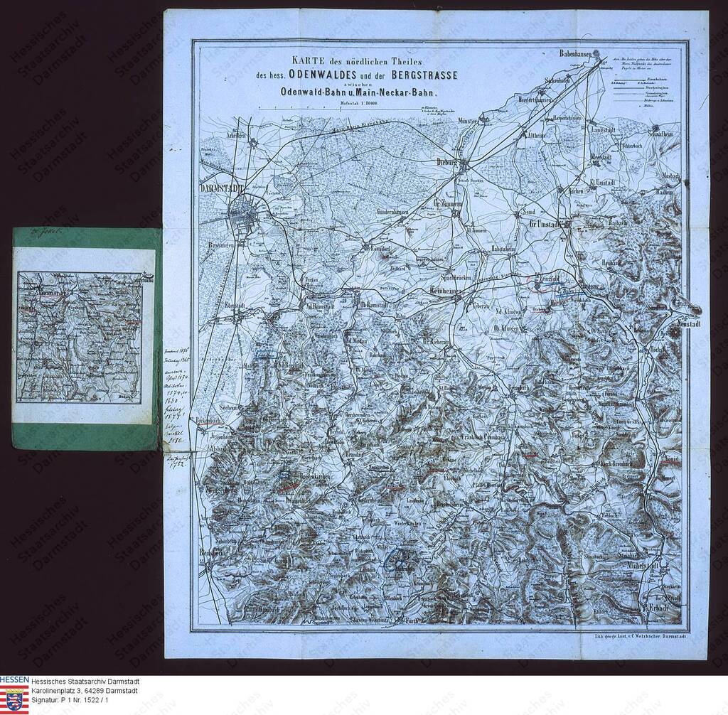 Maßstab 1:80.000, erschienen in der Lithografisch-geographischen Anstalt von C. Welzbacher, Darmstadt