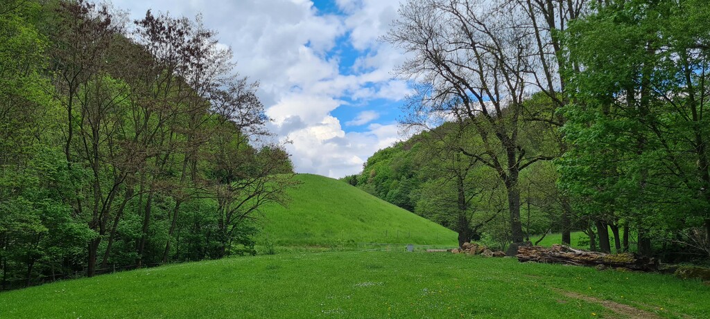 Der Schutzdamm am Retentionsbecken: dieses Becken soll Hochwasser von Reichenbach abwenden. Der Damm wurde aus Abraum aus dem Kupferbergwerk am Hohenstein errichtet. Das Becken liegt direkt unterhalb der Deponie |