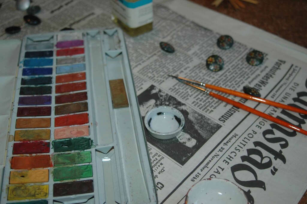 Mit Farbe - darunter natürlich auch Ultramarin - und Pinsel wurden von Hand alte Militärknöpfe "umgewidmet" zu dekorativen Trachtenknöpfen. Lesen Sie zum Thema Knöpfe auch "Knopfgeschichten" - dazu ist sicher noch nicht das letzte Wort geschrieben und das letzte Archivfoto veröffentlicht!