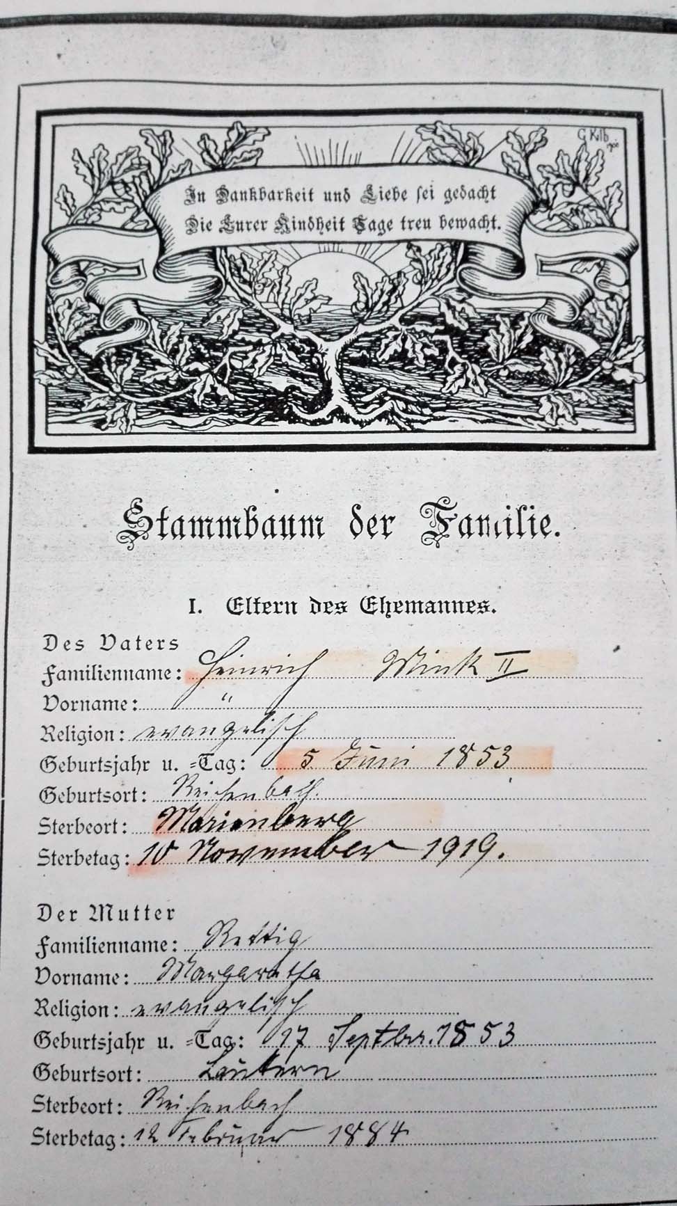 Dank Ingrid und Ernst Minks eigenen Fotos konnte so zweifelsfrei festgestellt werden, daß Heinrich Mink II der Urgroßvater von Katharina Herzog und von Ernst Mink ist.