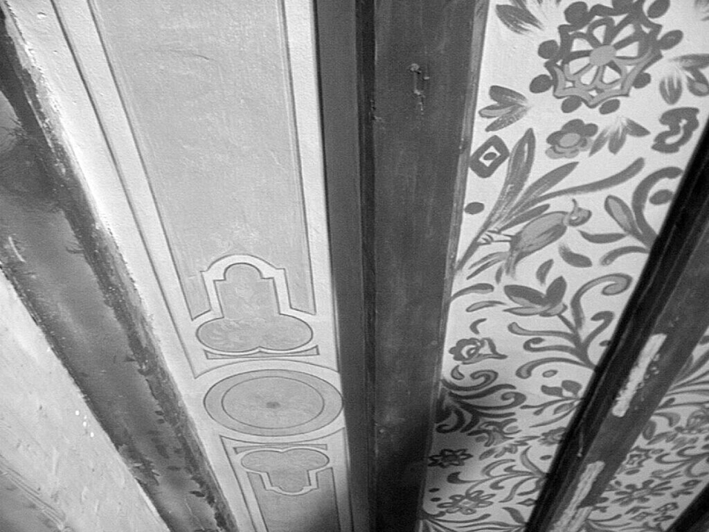 Bei Restaurierungsarbeiten an der Evangelischen Kirche im Jahr 2000 entdeckte man eine fantasievolle Bemalung der Deckensegmente zwischen den Balken.