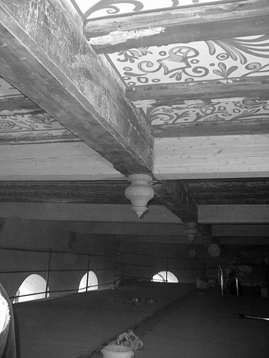 links: ältere Deckenbemalung von 1870, rechts üppige Ornamentik von 1910