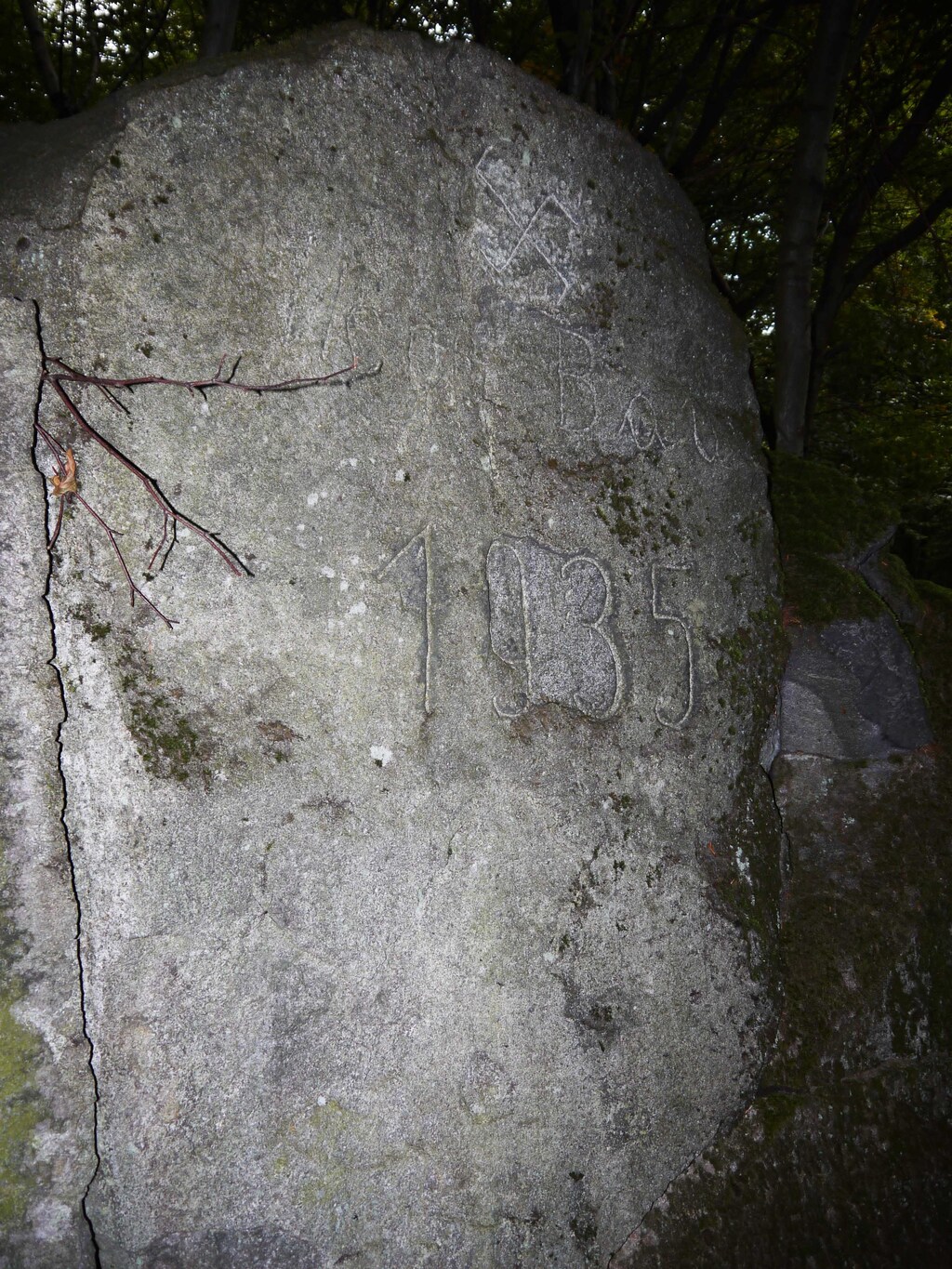 Direkt oberhalb des Riesenschiffes im Felsenmeer findet sich der Stein mit der eingemeißelten Inschrift "FAD Borstein 1933". Den Hinweis auf diesen Stein erhielt ich von Familie Bernhardt aus Beedenkirchen. Georg Bernhardt, 1949 in Beedenkirchen geboren und zur Schule gegangen, erinnert sich noch daran, daß sein Großvater Peter Bernhardt an diesem Weg (gelbe Markierung Nr. 5 im nordöstlichen Felsberg) mitgearbeitet hat. Der Stein muß noch lange Jahre nach Ende des 3. Reiches neben der besagten Inschrift ein Hakenkreuz getragen haben, denn nach Georg Bernhardts Erinnerungen mußten die Schüler der 7. und 8. Klasse dieses Hakenkreuz entfernen, das wäre also erst 11-12 Jahre nach Kriegsende gewesen. Ein weiterer FAD-Stein mit Inschrift steht im Neunkircher Wald sowie auf dem Krehberg. Marieta Hiller, Oktober 2016