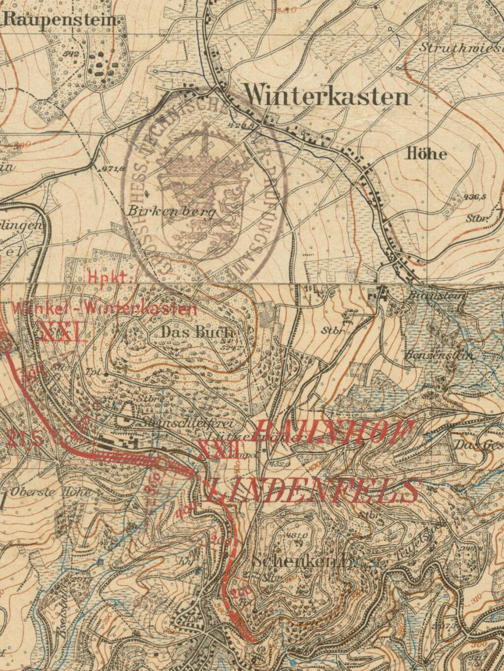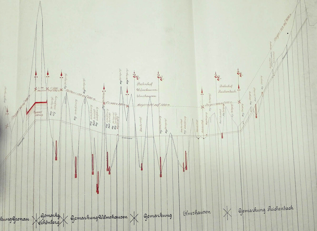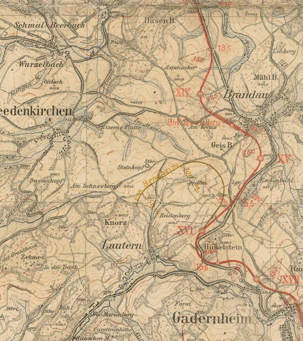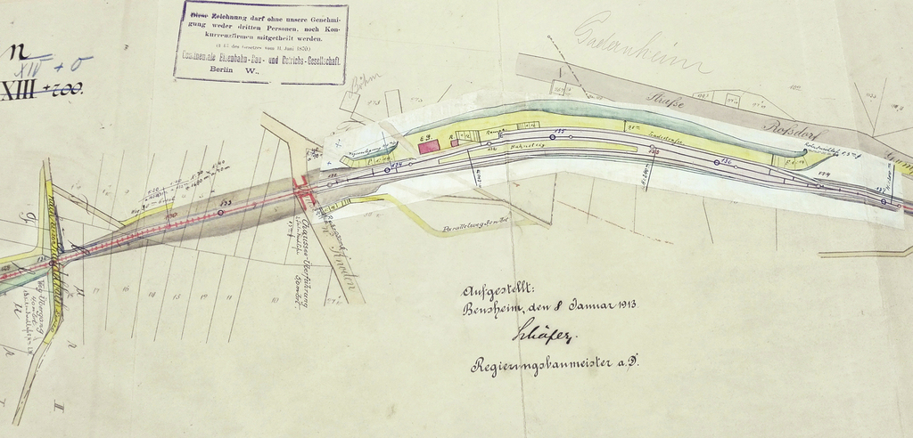 Streckenplanung 1913: Gadernheim (oben und unten)