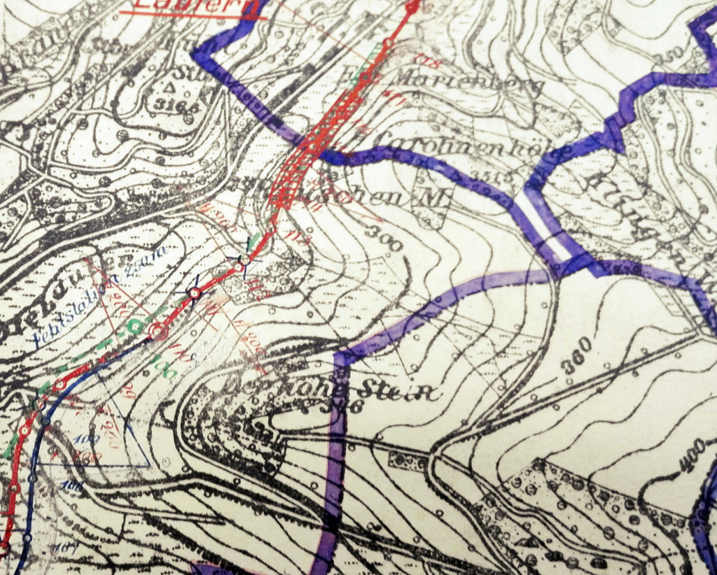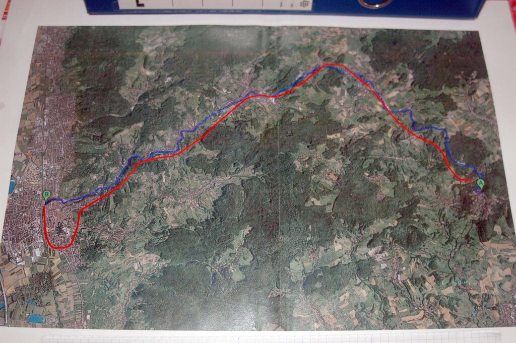 Peter Elbert hat die beiden Streckenverläufe in rot und blau eingezeichnet