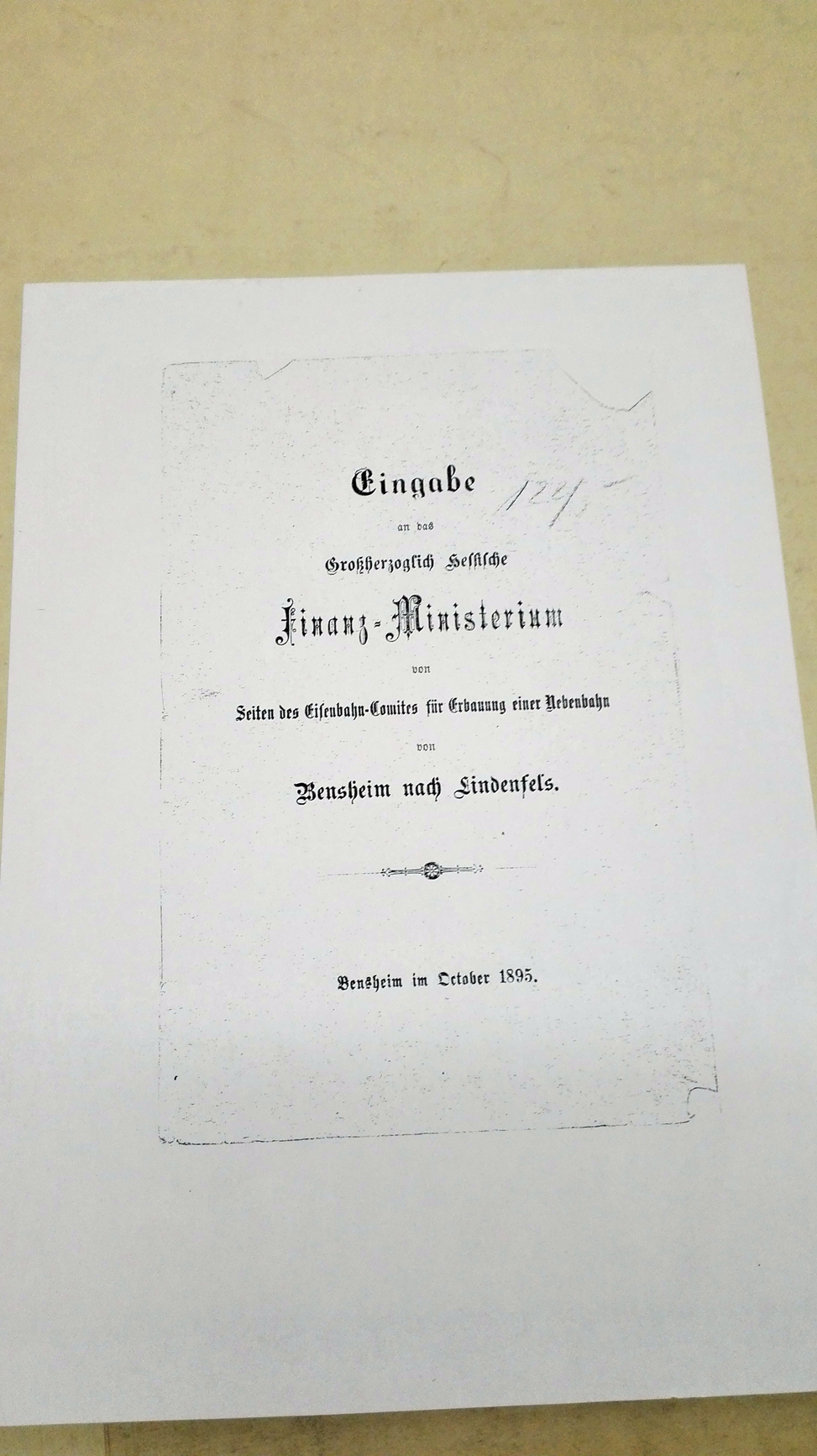 1896 wurde der Bau der Bensheim - Lindenfels - Bahn durch die Abgeordneten der II. Kammer der Volksvertretung beschlossen