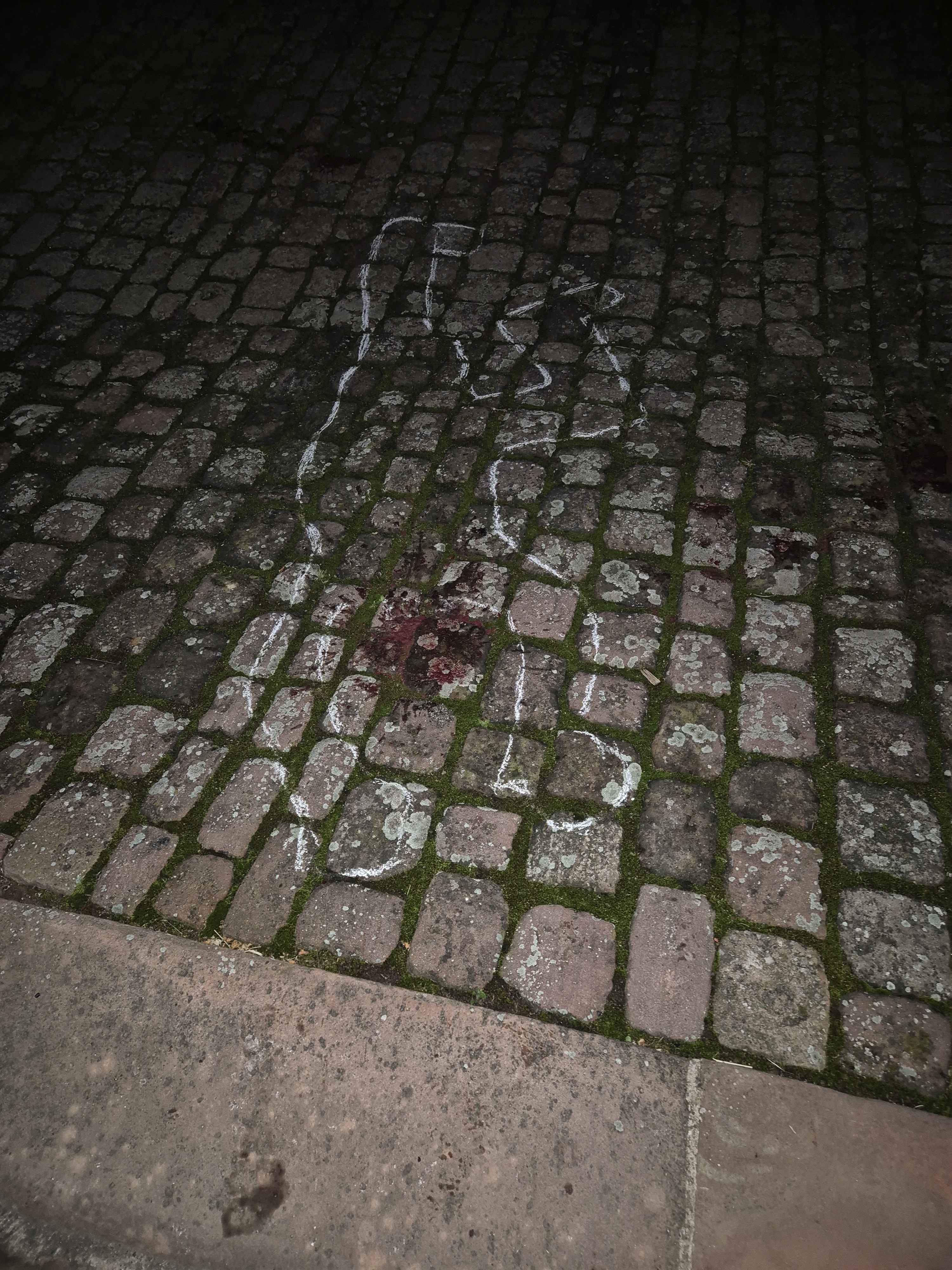 Direkt vor dem stimmungsvollen "Trauzimmer" auf Burg Breuberg ist ein Mord geschehen! Die Besucher werden gebeten, einen großen Schritt über die Blutreste am Boden zu machen...