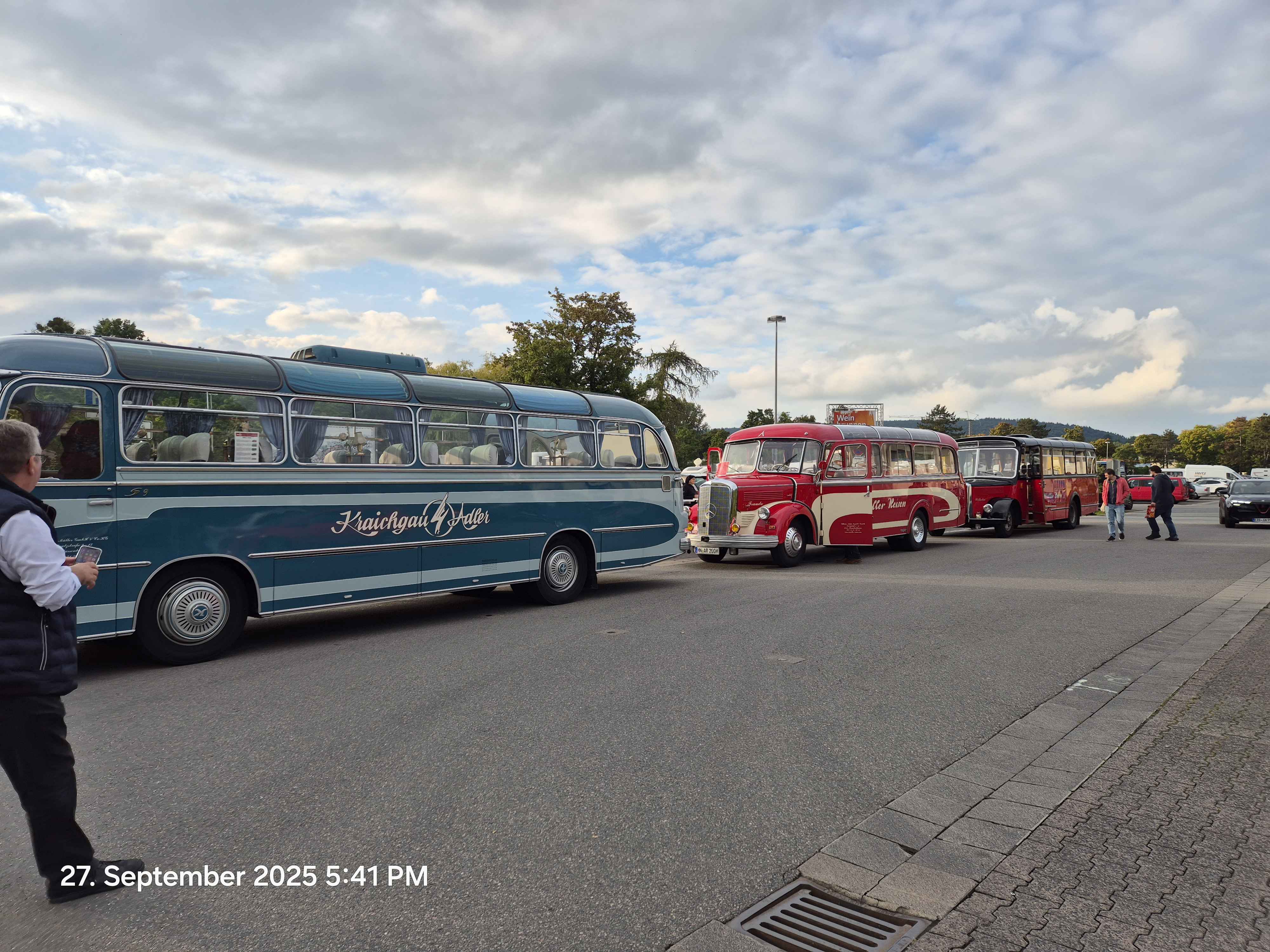 Mit vier historischen Bussen der Firma Wilhelm Müller aus Massenbachhausen ging das Team der Museumsstraße mit jeweils vierzig Fahrgästen am Abend des 27. September auf Nostalgiefahrt: in Michelstadt ging es los.