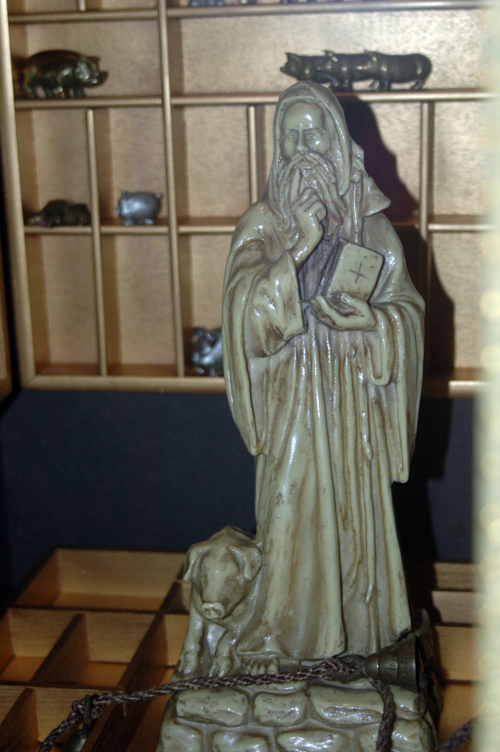 Antonius lebte etwa um 251-356 nach Christus in Ägypten. Sein Orden, die Antoniter - die Begründer des christlichen Mönchtums - heilten einmal den Sohn eines französischen Adligen vom Antoniusfeuer, einer Pilzvergiftung. Der Adlige gründete aus Dankbarkeit 1095 den Antoniterorden. Die Antoniter haben das Recht, ihre Schweine frei herumlaufen zu lassen, die Bevölkerung fütterte sie das ganze Jahr und am Antoniustag wurden sie geschlachtet, gesegnet und an die Armen der Gemeinde verteilt.