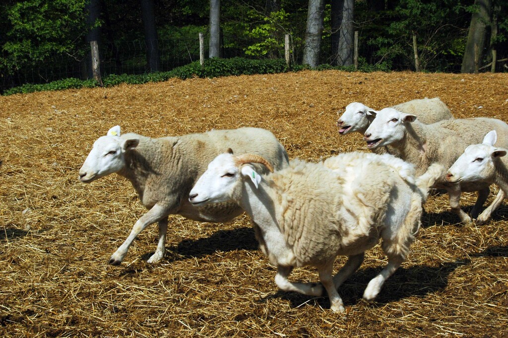 Fröhliche Schafe auf der Kuralpe-Weide; über Schafhaltung im Odenwald und über den "bösen" Wolf lesen Sie wenn Sie ins Bild klicken.