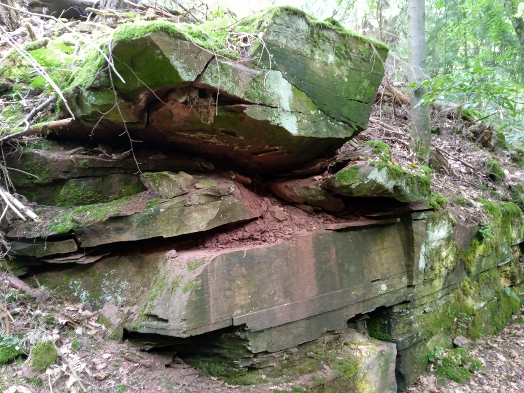 Der Plattensandstein ist die oberste Schichtung über dem Feldsandstein (sehr quarzhaltig und spröde, wurde im Mittelalter für Mühlsteine und Sarkophage verwendet). Die tiefste Sandsteinschicht ist der Dicksandstein direkt am Mainufer, diesen bauten bereits die Römer ab.