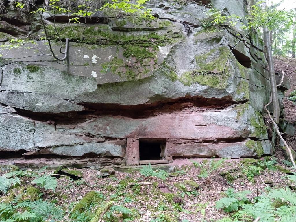 Das Besondere an der Steinbruchlandschaft Haag ist ein Bremsberg. Die abgebauten Sandsteinplatten mußten vom Berg hinunter zum Main gebracht werden. Dazu gab es eine Schienenstrecke für Loren mit einer Ausweiche. Die abwärtsfahrende Lore zog die unten entladene wieder nach oben, zusätzlich mußte jedoch mit einem liegenden Bremsrad per Backenbremse reguliert werden. Herrmann Farrenkopf (von ihm werden Sie im Frühjahr 2024 weitere interessante Infos auf odenwald-redaktion finden!) berichtete, daß er eine Original-Lore vom Haag retten konnte. Diese ist nun am Bremsberg zu sehen. Er konnte auch erzählen, daß die Steinbrucharbeiter aus den umliegenden Ortschaften täglich zu Fuß kilometerweit und über zweihundertfünfzig Höhenmeter zum Steinbruch Haag gehen mußten - wie in den Steinbrüchen in unserer Gegend auch.
